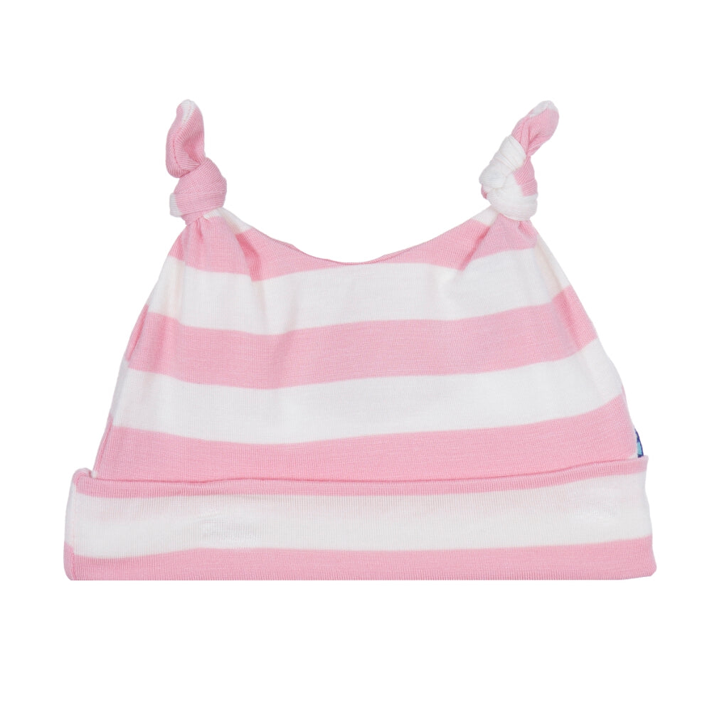 - Double Knot Hat is made of 95% Viscose from Bamboo, 5% Spandex. SPF 50+. Made from organically grown bamboo. Hat sizing will be sized to match your box selection. Choose between matching solid Lotus pink hat or striped hat.