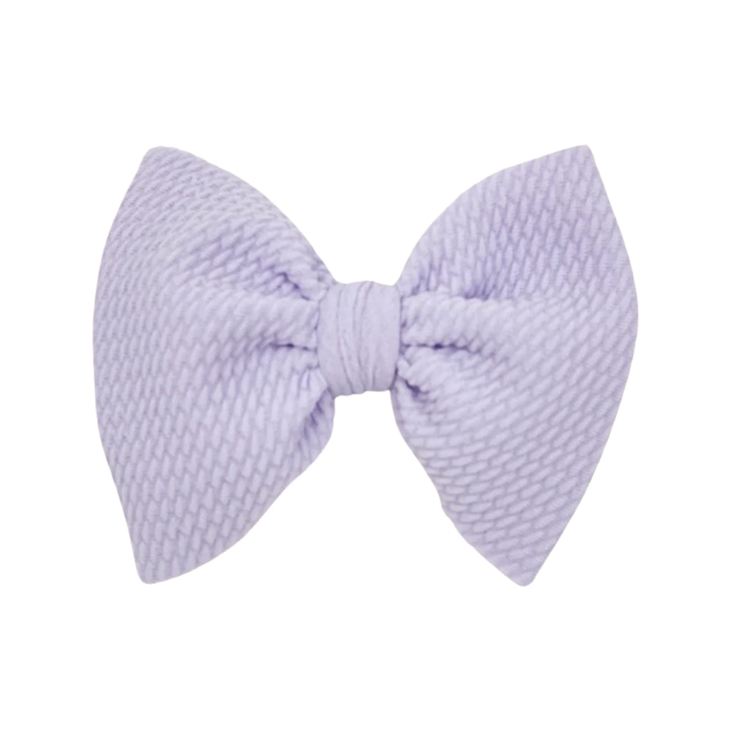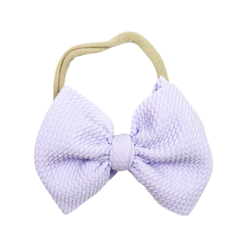 Bow measures approximately 4" in width. One size fits all, nylon has considerable stretch. Suitable for babies of all ages.