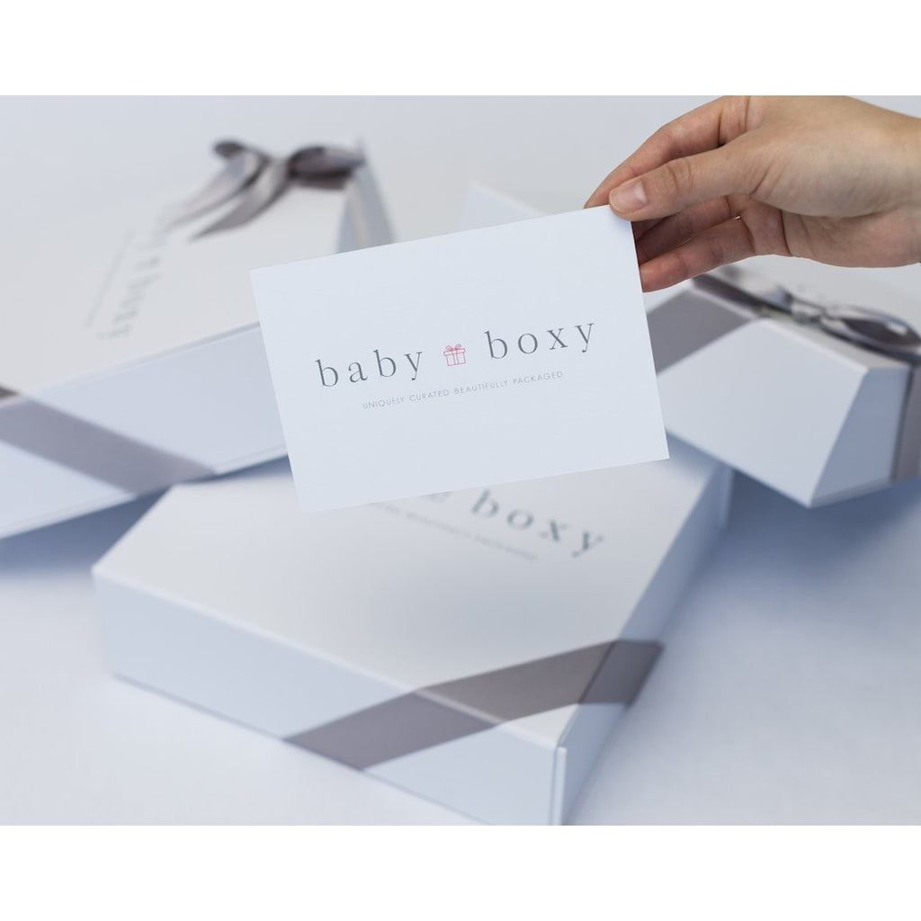 Free with every baby gift box purchase. Featuring premium, luxe card stock. Gift message is printed on card (handwritten note available upon request). Comes with a coordinating envelope. Size: 6 inches x 4 inches.