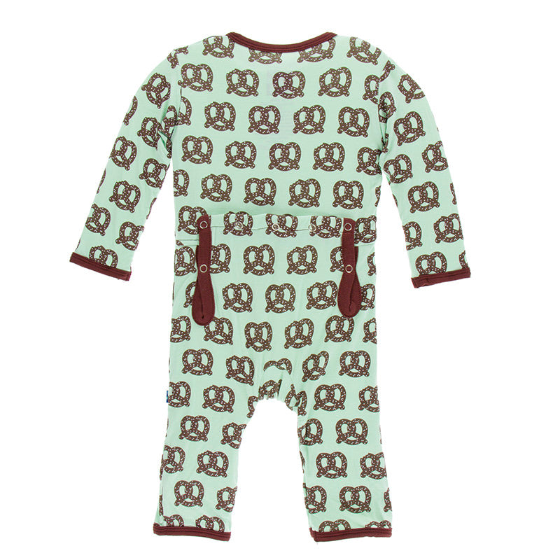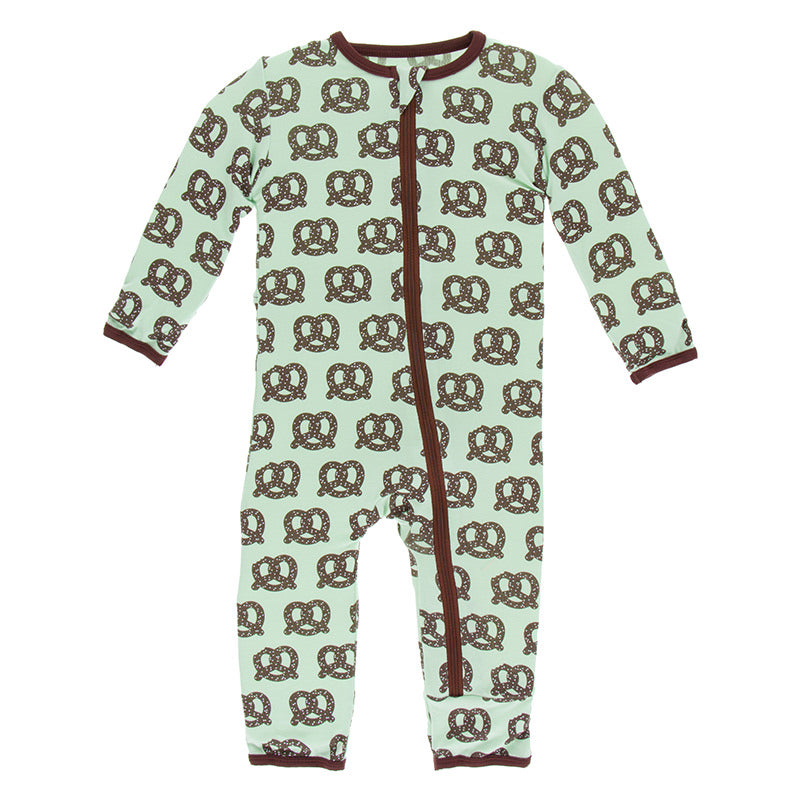 Coverall is made of 95% Viscose from Bamboo, 5% Spandex. SPF 50+. KicKee Pants uses only source bamboo that is grown organically from manufacturers that provide Harmful Chemical Free Assurance. Sizes 9 months and below are layette fit which is a looser fit designed for the comfort of young babies.
