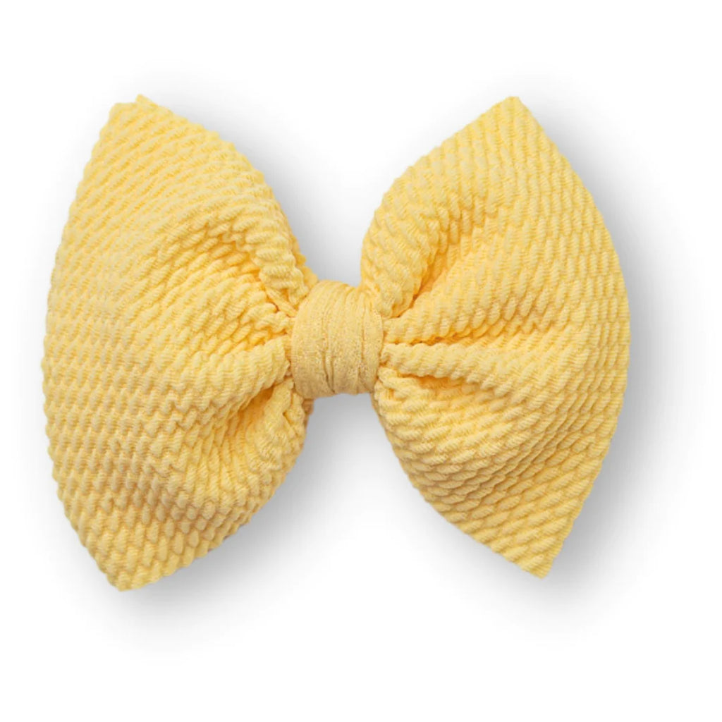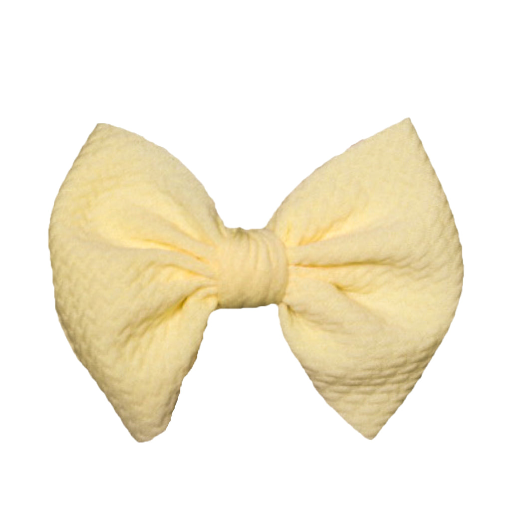 - Bow measures approximately 4" in width. One size fits all, nylon has considerable stretch. Suitable for babies of all ages.
