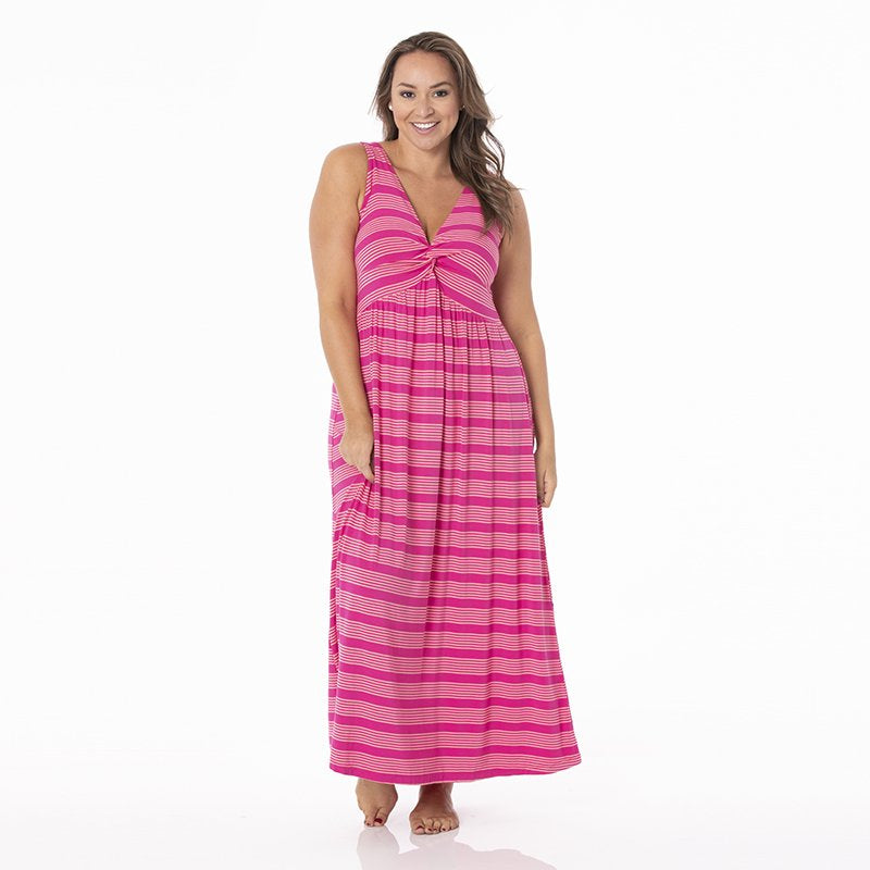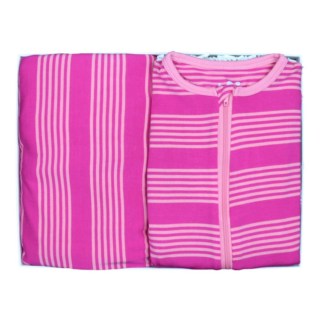 Treat baby and mommy to luxury with this beautiful matching gift set, featuring the softest bamboo clothing by Kickee Pants. This Deluxe Mommy & Me Gift Set contains a bamboo zipper coverall in print Calypso Stripe (for baby), and Simple Twist Women's Nightgown in Calypso Agriculture Stripe. Now Mommy and baby can both be ultra comfortable AND matching!