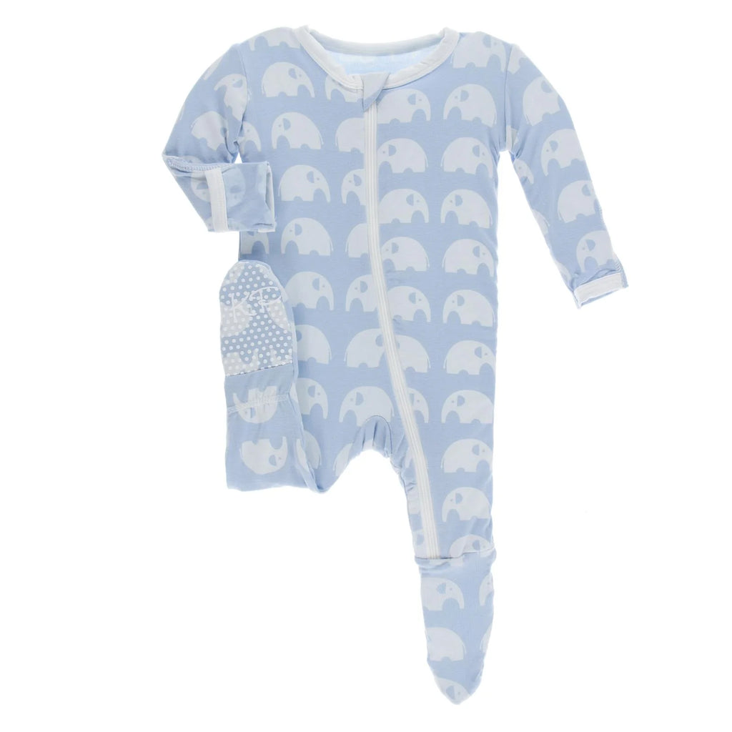 - Elephant Footie is made of 95% Viscose from Bamboo, 5% Spandex. Footie features flip paws to cover baby's cold hands and prevent scratching. The inside of each foot is lined with soft fleece and the outside bottom is embroidered to prevent slipping. SPF 50+. KicKee Pants uses only source bamboo that is grown organically from manufacturers that provide Harmful Chemical Free Assurance.