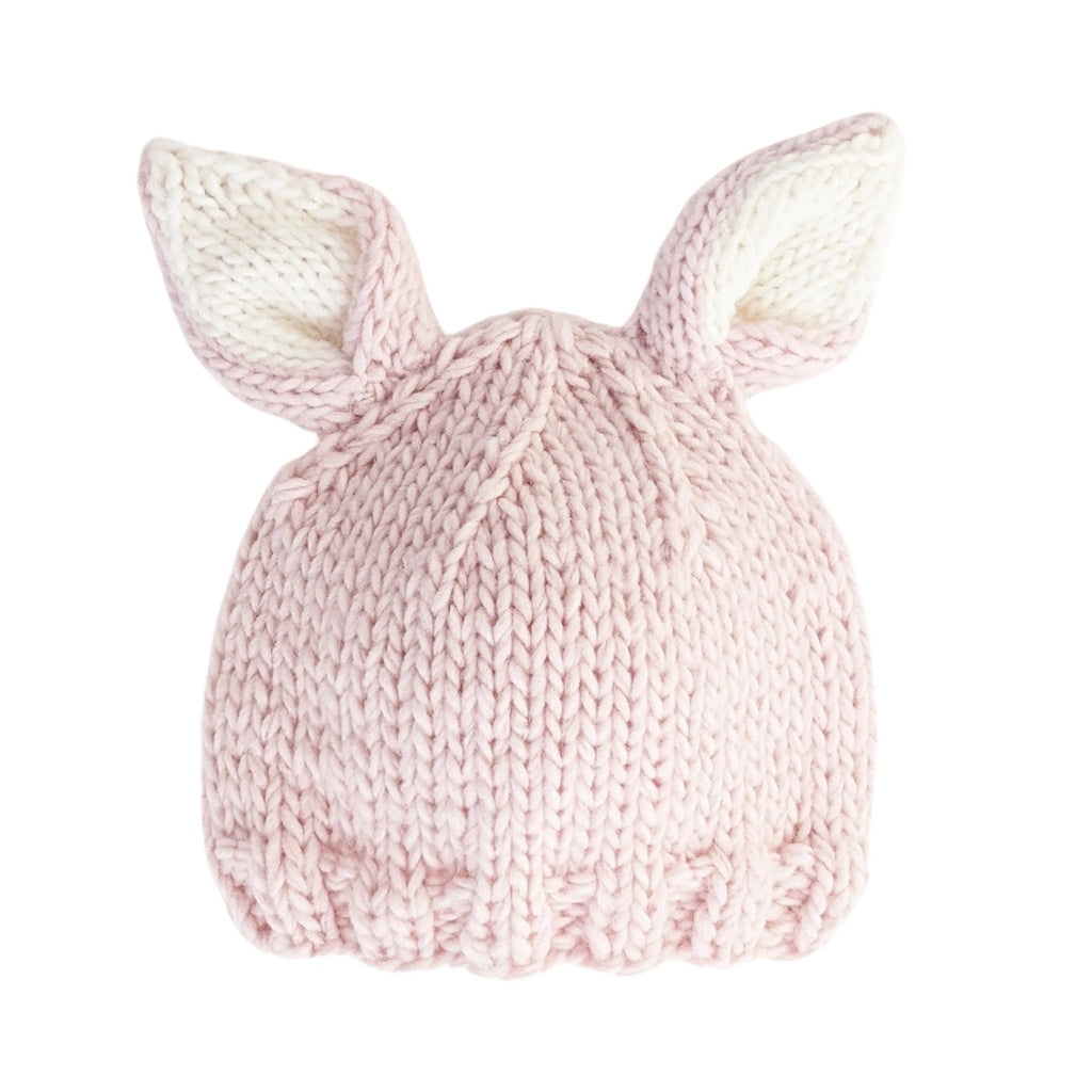 Bunny hat is a soft, hand knit beanie hat in blush pink with stand-up bunny ears lined in creamy white yarn. Perfect for Easter or anytime you want baby to look adorable like a cute little cottontail!! 100% acrylic.