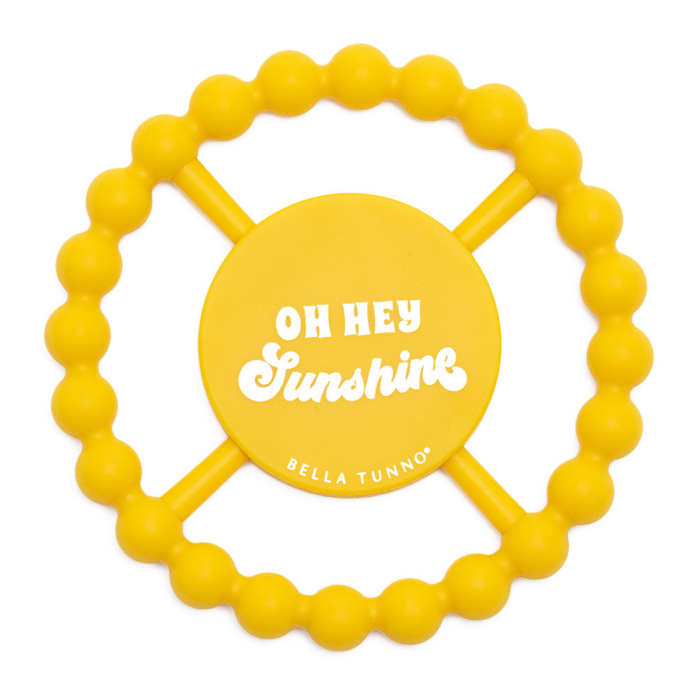 - This silicone teether will soothe sore gums and provide sensory stimulation for baby. The silicone beaded material provides an attractive texture for mouthing and teething. The Happy Teether is easy to grip from any angle and gives the right amount of resistance to provide pain relief for early teeth. Measures 4.5" diameter