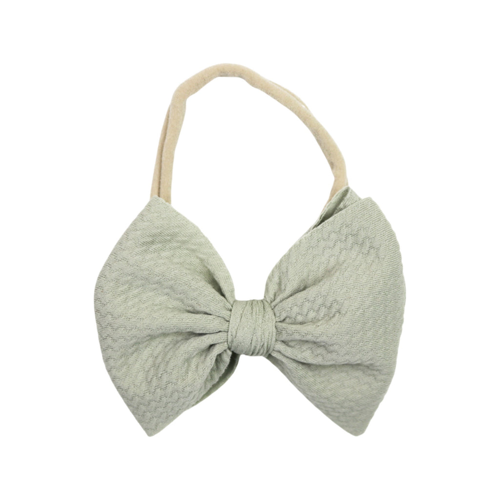 Skinny bow on nude nylon. Bow measures approximately 4" in width. One size fits all, nylon has considerable stretch. Suitable for babies (and toddlers!) of all ages.